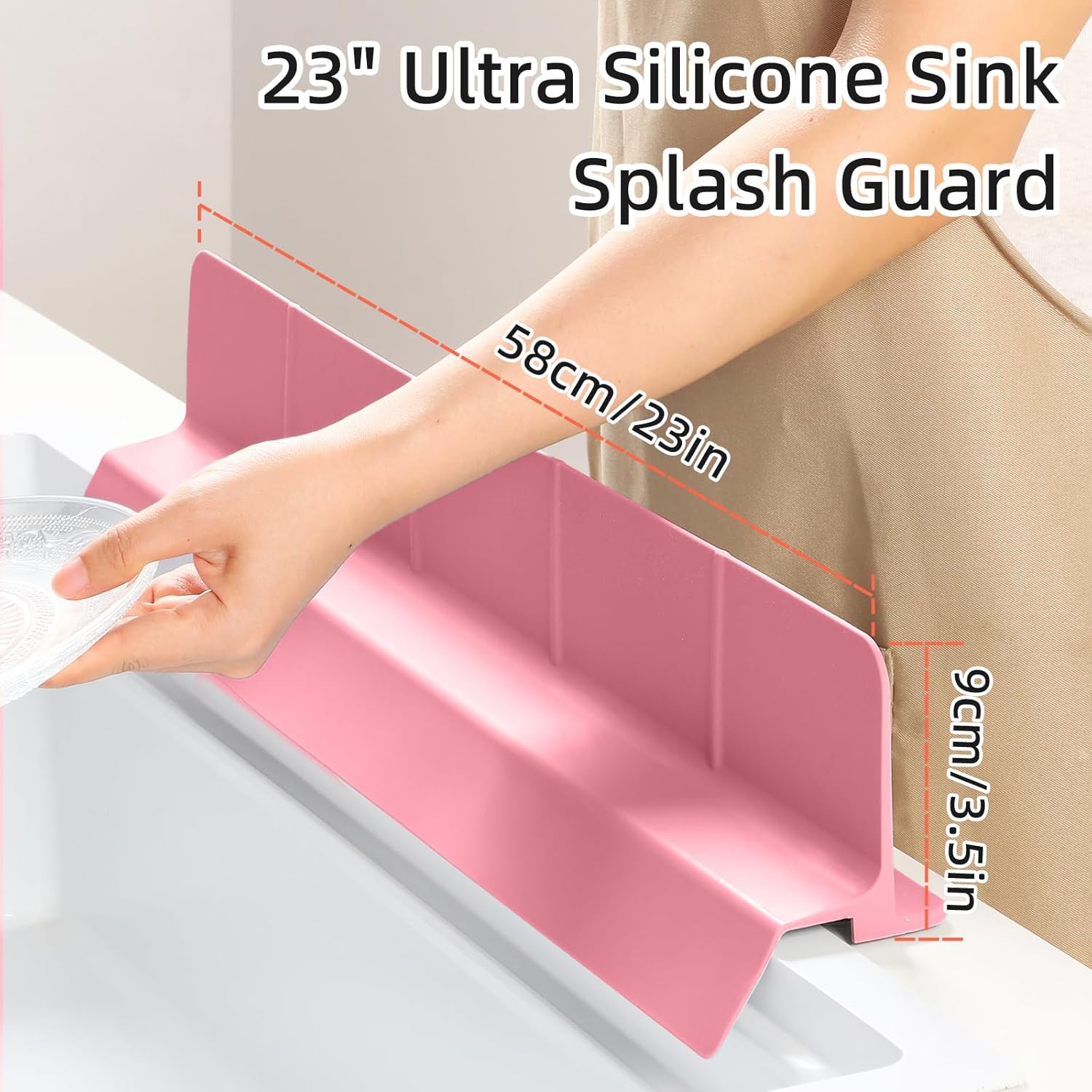 | Item Type Name | 23" Ultra Silicone Sink Splash Guard Released in 2025/Dec,Self-Draining Water Splash Guard for Kitchen Sink,Bathroom and Island,with 3.5" High Splash Guard & 7 Strong Suction Cup (Pink) |