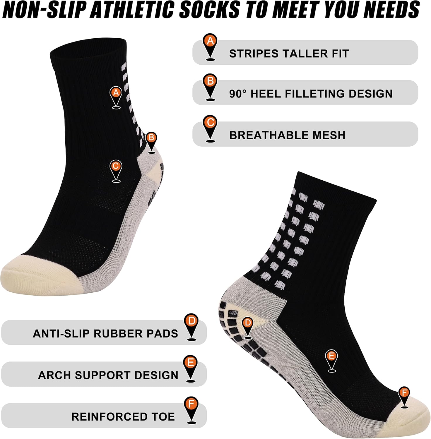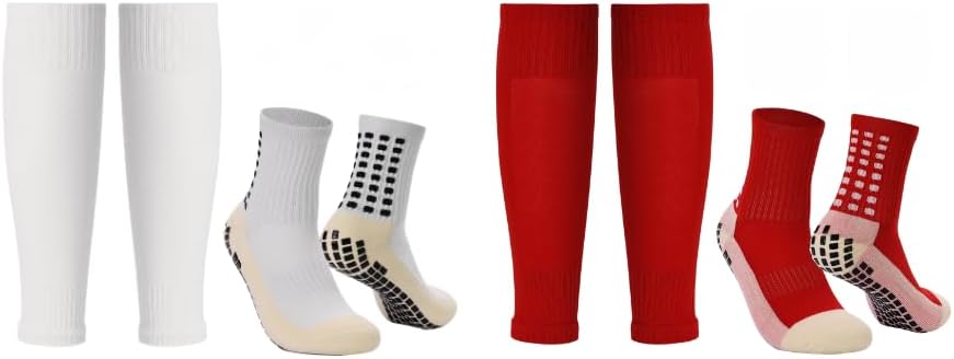 Introduction: So many future soccer players search for such a product. A dual color bundle of grip socks, and leg sleeves. This search has now come to an end with our bundle of Grip Socks, and leg sleeves. Our Quality: You deserve the best, and so do your feet. Our entire team is wholeheartedly committed to making sure that each and every product we offer is of the highest quality, using only premium materials to produce our apparel. We use natural formulations and avoid including harsh, unnecessary chemicals that aren’t kind to your skin or the planet What is Included: 2 pairs of The Grip Socks 2 Pairs of Sock Leg Sleeves Our Bundle is designed specifically for Soccer players who hate having to always cut their socks and then use grip socks followed by taping the leg sleeves and grip socks. With these products bundled together, you can reuse the leg sleeves in perfect conditions each time. Reuse as many times as you’d like without having to worry that one day the sleeve will tear apart. Who is This A Perfect Gift For: Soccer Players, Athletes, Runners, Boyfriend, Girlfriend