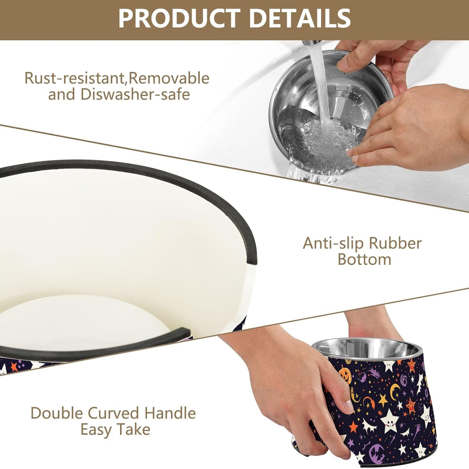 Material: Melamine + Stainless Steel. This Cats Food Bowls has a silicone anti-slip strip at the bottom and is designed to prevent toppering. When your pet is eating, the bowl can basically remain in its original position.Feeder Pets Bowl Size: High Bowl: 7.48 x 4.92 inch/19 x 12.5 cm; Stainless Steel Bowl: 3.94 x 5.51 x 2.09 inches /10 x 14 x 5.3 cm.Product Design: This double-layer superimposed design of this Feeder Pets Bowl has greatly improved a series of hygiene problems caused by pets eating and made it easy for pets to eat.Easy To Clean: Stainless steel Cats Food Bowls are detachable and can be easily taken out for cleaning and kept clean. It can be given as a present to your/your friend's beloved pet.Warm Reminder: This Feeder Pets Bowl comes with two accessories. Please check them carefully after receiving the goods. If you have any questions, please contact us by email. Our customer service will answer your doubts!